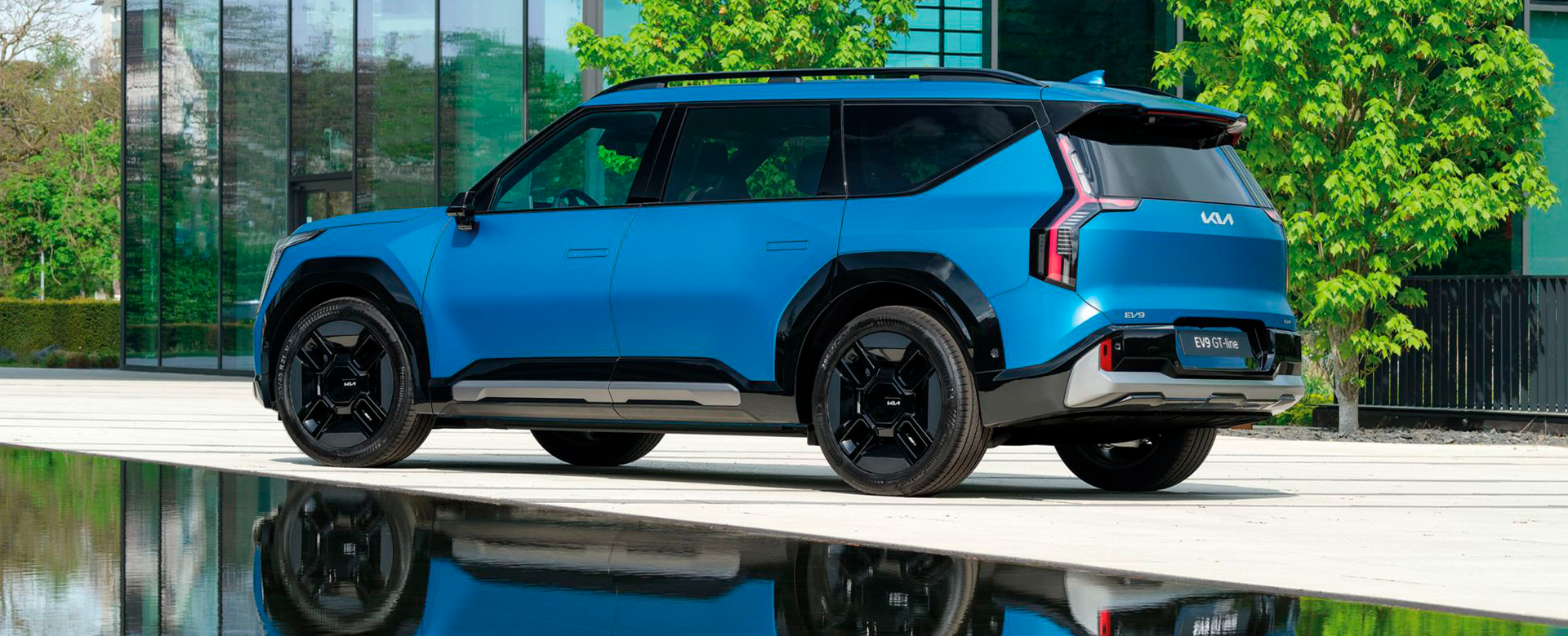 O painel digital do Kia EV9 exibe informações essenciais, como velocidade, nível de carga e autonomia. O design moderno e intuitivo proporciona fácil leitura, enquanto gráficos avançados e indicadores personalizáveis oferecem uma experiência tecnológica e conectada ao motorista.